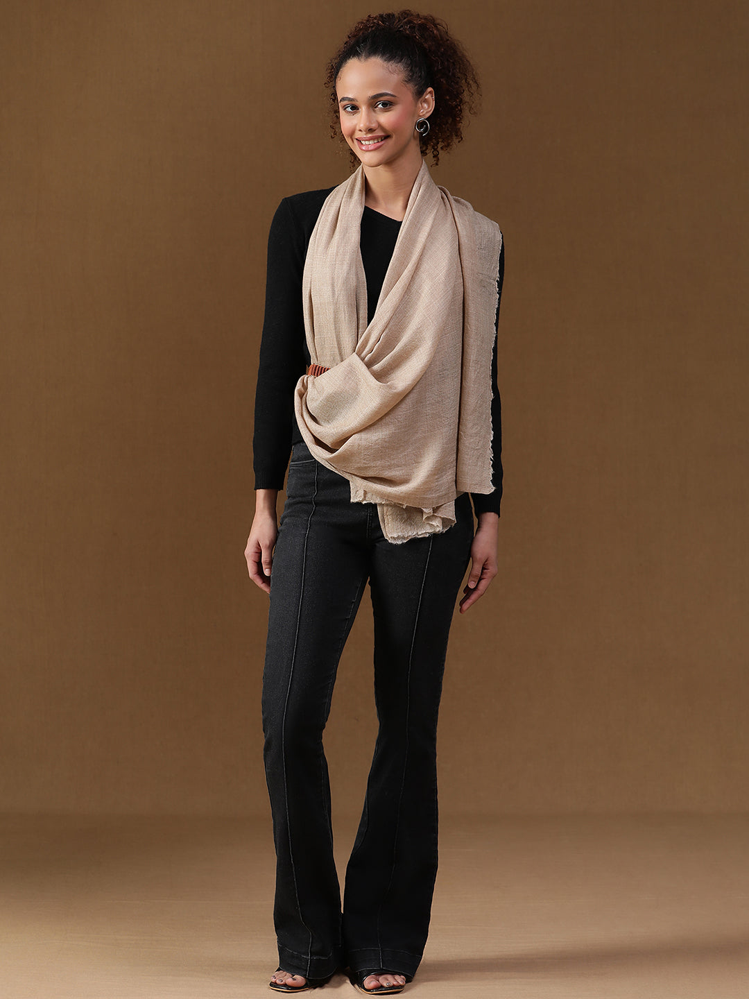 The airy, breathable fabric makes it ideal for year-round wear, offering just the right warmth without feeling heavy. Its pastel lavender hue adds a soothing touch of color, perfect for layering with workwear, travel outfits, or casual ensembles. Whether draped over the shoulders or looped around the neck, it enhances any look with understated sophistication.