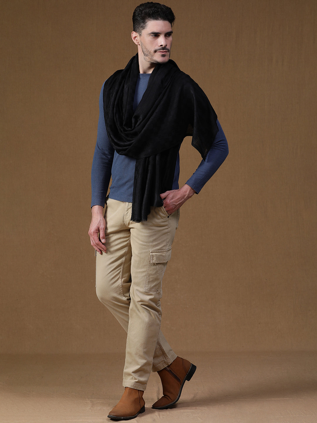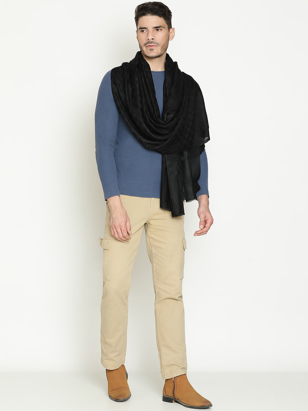 Contemporary Wool-Blend all over Checkered Weave Ink Black Muffler