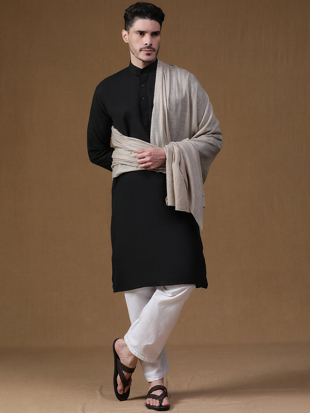 Rooted in heritage, designed for today — this men’s pure wool Lohi celebrates the natural beauty of undyed wool. Woven from 100% premium wool, it retains the authentic texture, warmth, and tone of the fibre itself. Soft, breathable, and effortlessly lightweight, it offers year-round comfort while maintaining a classic drape. The minimalist appeal of pure wool colors gives it timeless versatility — perfect for traditional wear, winter festivities, or refined everyday layering.