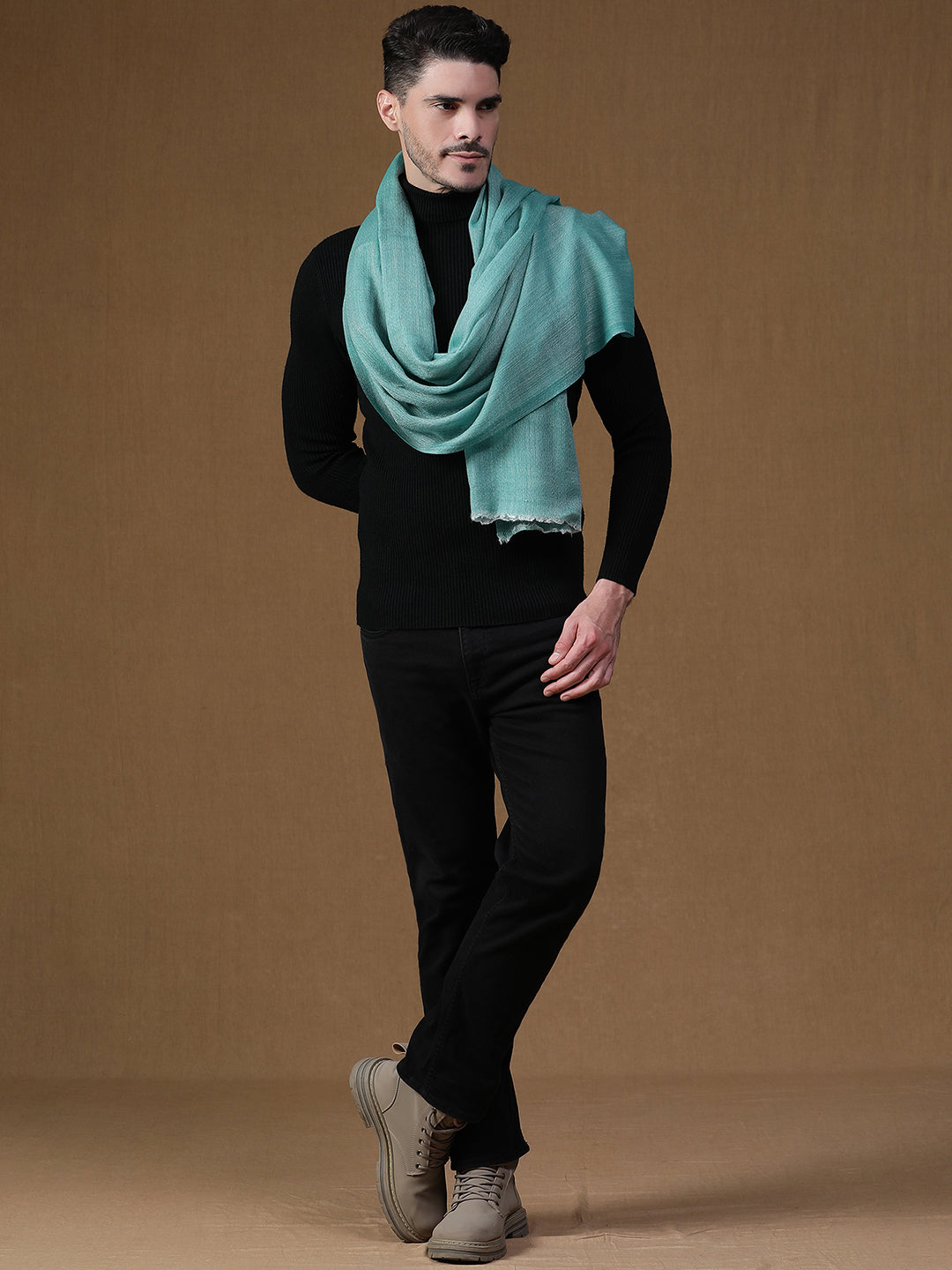 A statement in understated elegance, this wool blend muffler in a Aqua Blue hue adds warmth and sophistication to men’s formal attire. Soft to the touch and impeccably finished, it drapes effortlessly over suits or festive ensembles. Perfect for formal gatherings or evening celebrations, this solid-colored muffler is a timeless accent that enhances any refined look with subtle charm and confidence.