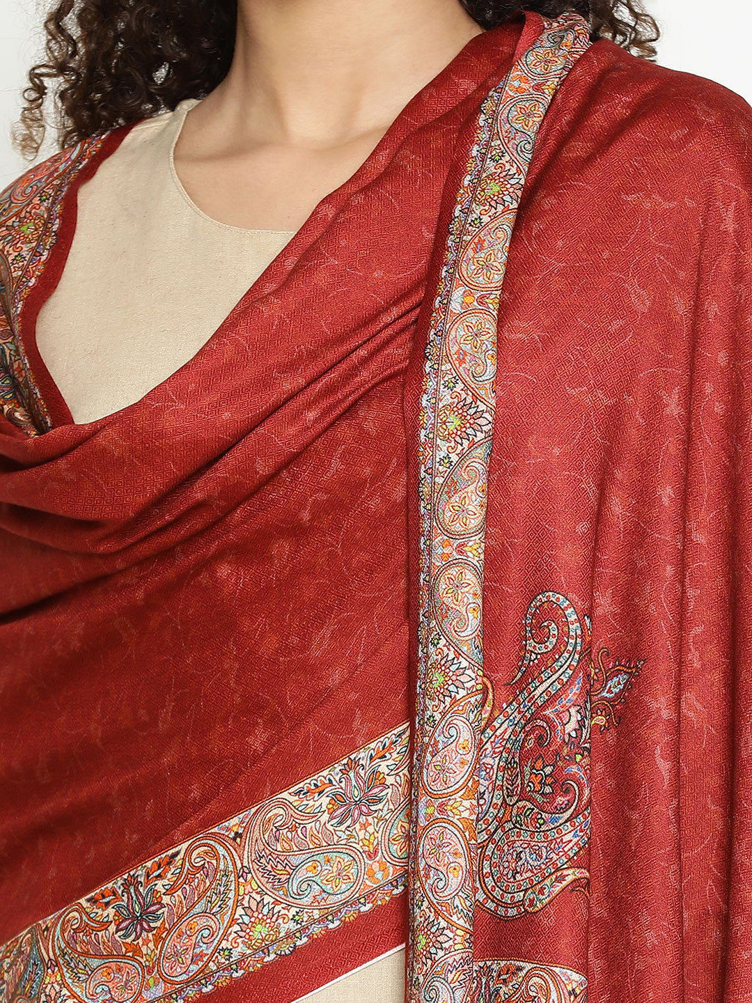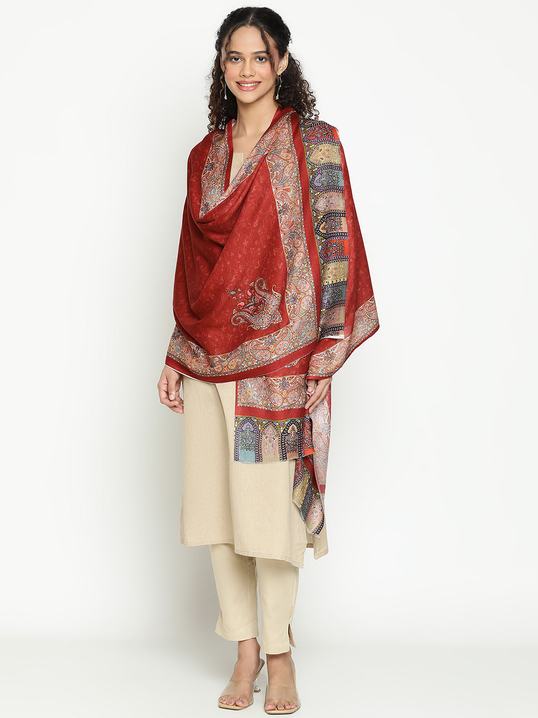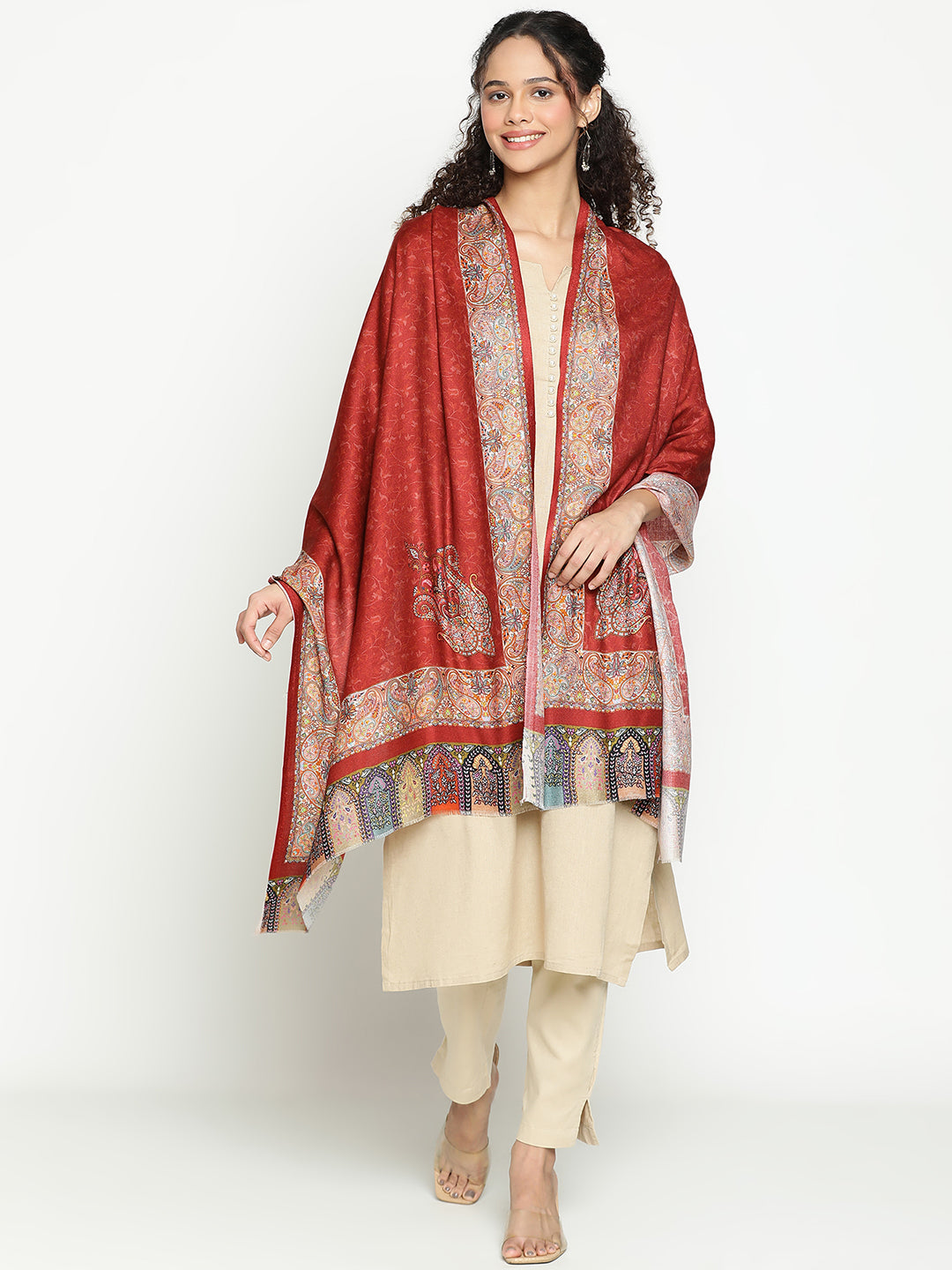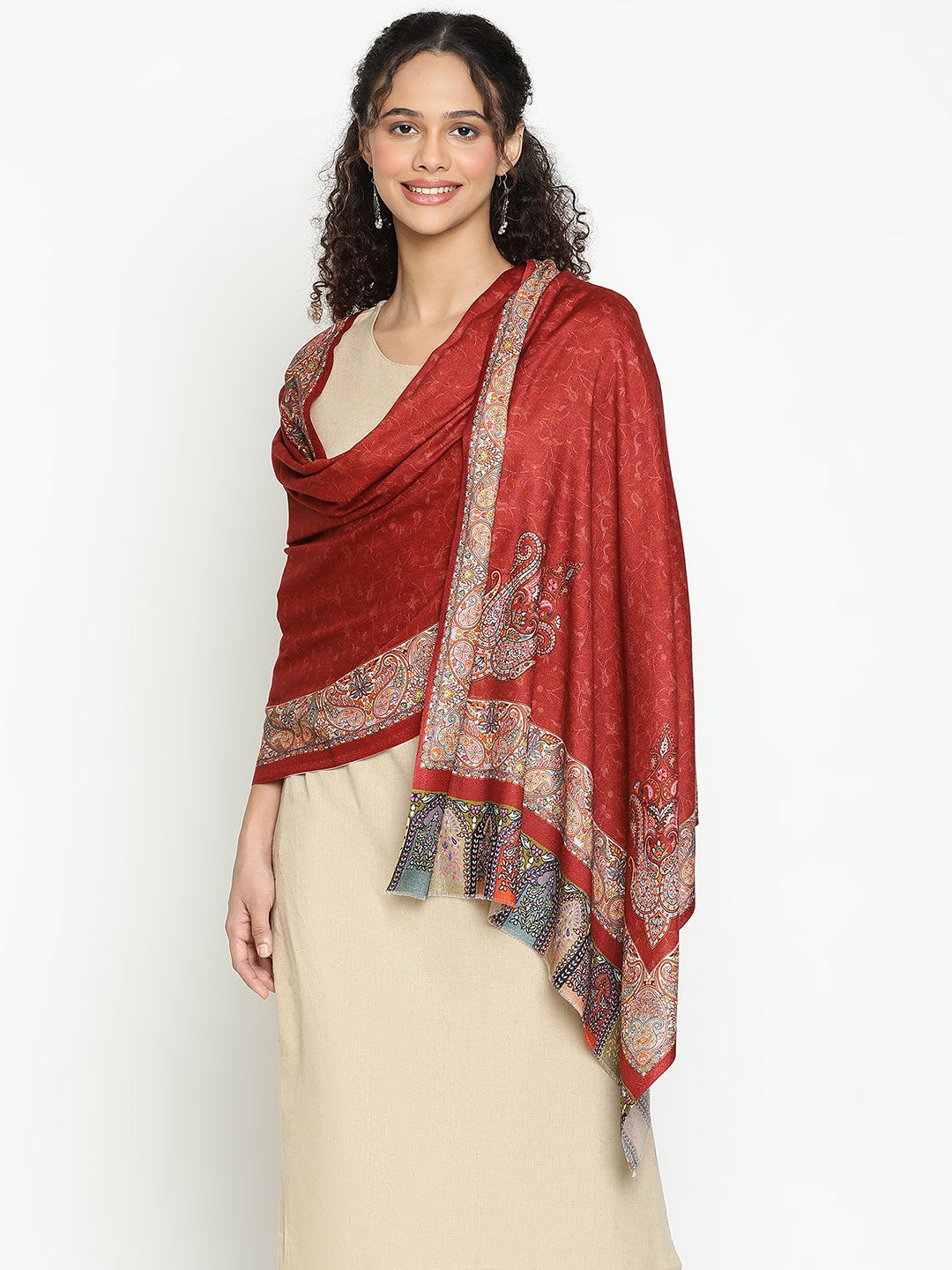 Add a touch of quiet luxury to your everyday look with this maroon wool-blend scarf. Soft, lightweight, and beautifully detailed, it features delicate paisley borders and a subtle self-weave texture that blend tradition with modern charm. Its rich maroon hue pairs effortlessly with workwear, festive outfits, or cozy travel layers — making it a true all-rounder for every occasion. Thoughtfully crafted for women who appreciate comfort and detail, this scarf is as easy to wear as it is elegant — a timeless piece you’ll reach for season after season.