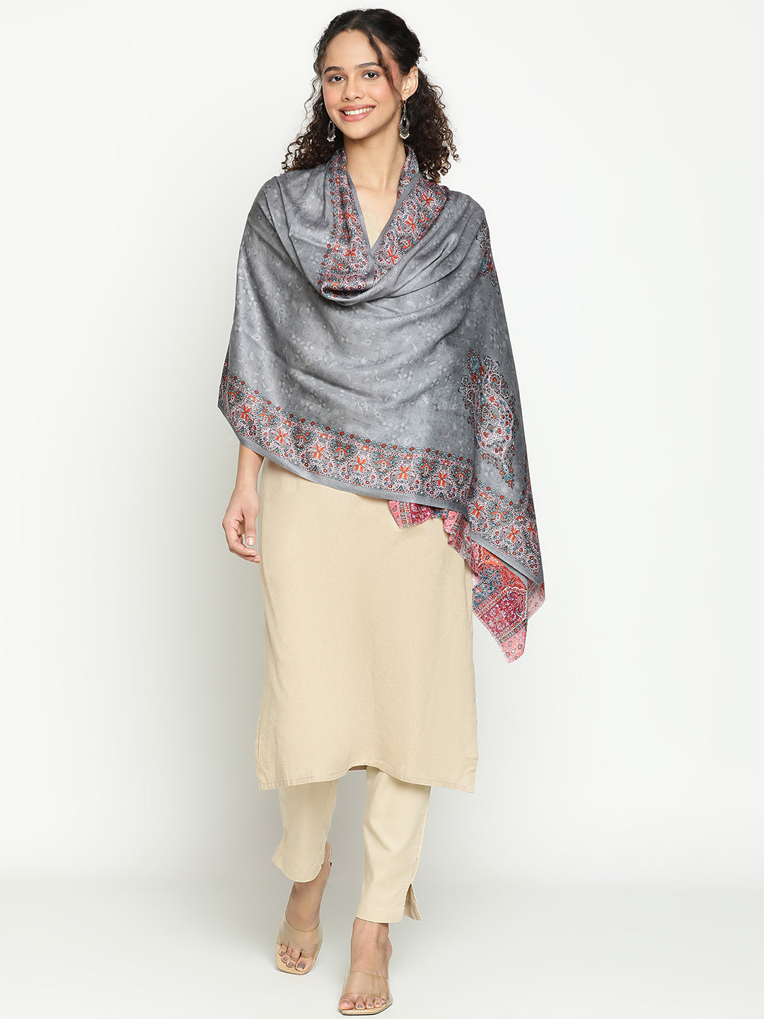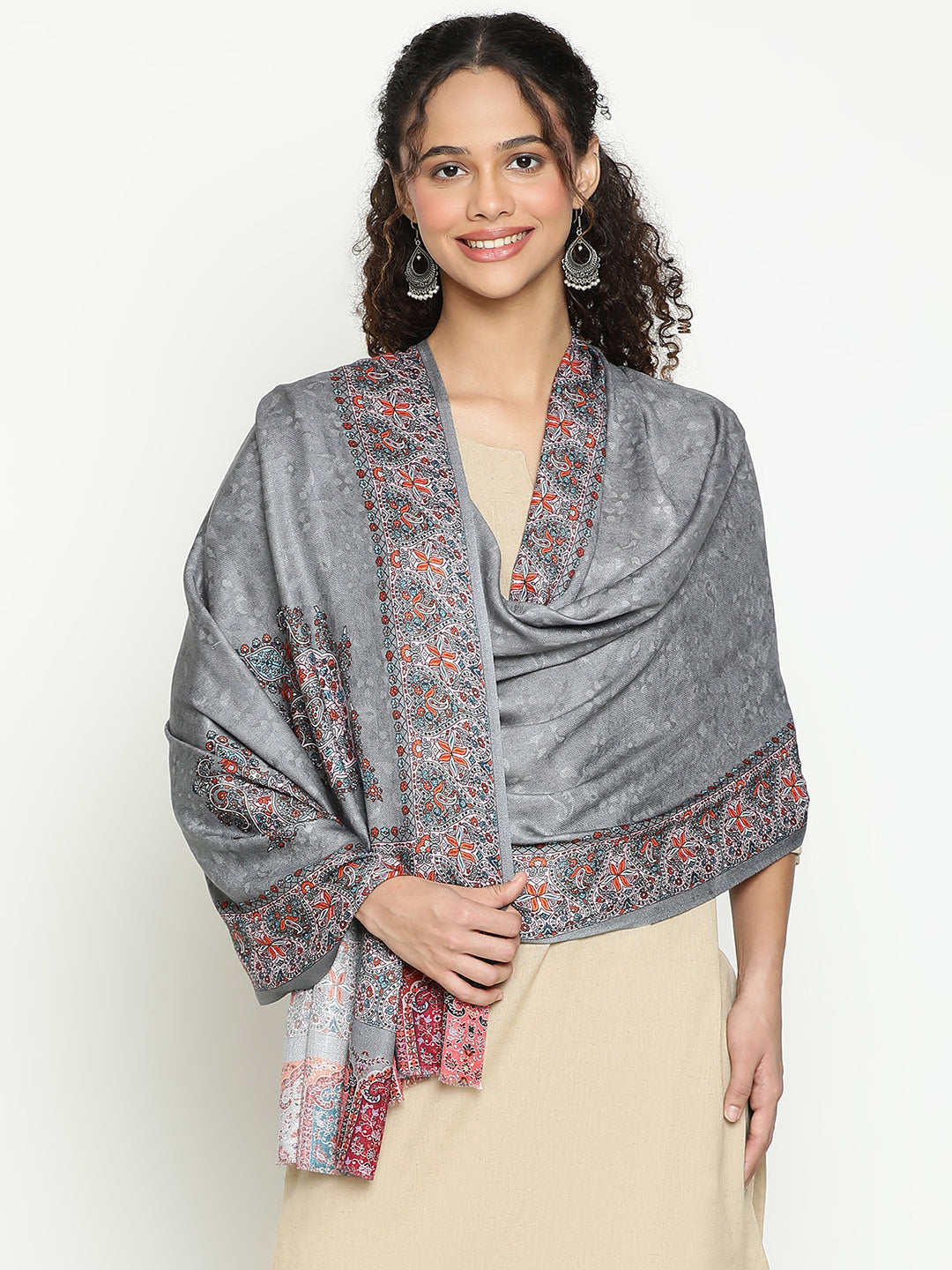 Add a touch of quiet luxury to your everyday look with this maroon wool-blend scarf. Soft, lightweight, and beautifully detailed, it features delicate paisley borders and a subtle self-weave texture that blend tradition with modern charm. Its rich maroon hue pairs effortlessly with workwear, festive outfits, or cozy travel layers — making it a true all-rounder for every occasion. Thoughtfully crafted for women who appreciate comfort and detail, this scarf is as easy to wear as it is elegant — a timeless piece you’ll reach for season after season.