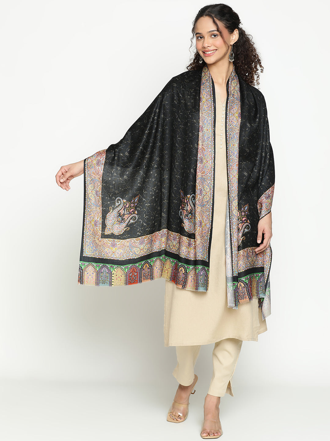 Add a touch of quiet luxury to your everyday look with this maroon wool-blend scarf. Soft, lightweight, and beautifully detailed, it features delicate paisley borders and a subtle self-weave texture that blend tradition with modern charm. Its rich black hue pairs effortlessly with workwear, festive outfits, or cozy travel layers — making it a true all-rounder for every occasion. Thoughtfully crafted for women who appreciate comfort and detail, this scarf is as easy to wear as it is elegant — a timeless piece you’ll reach for season after season.