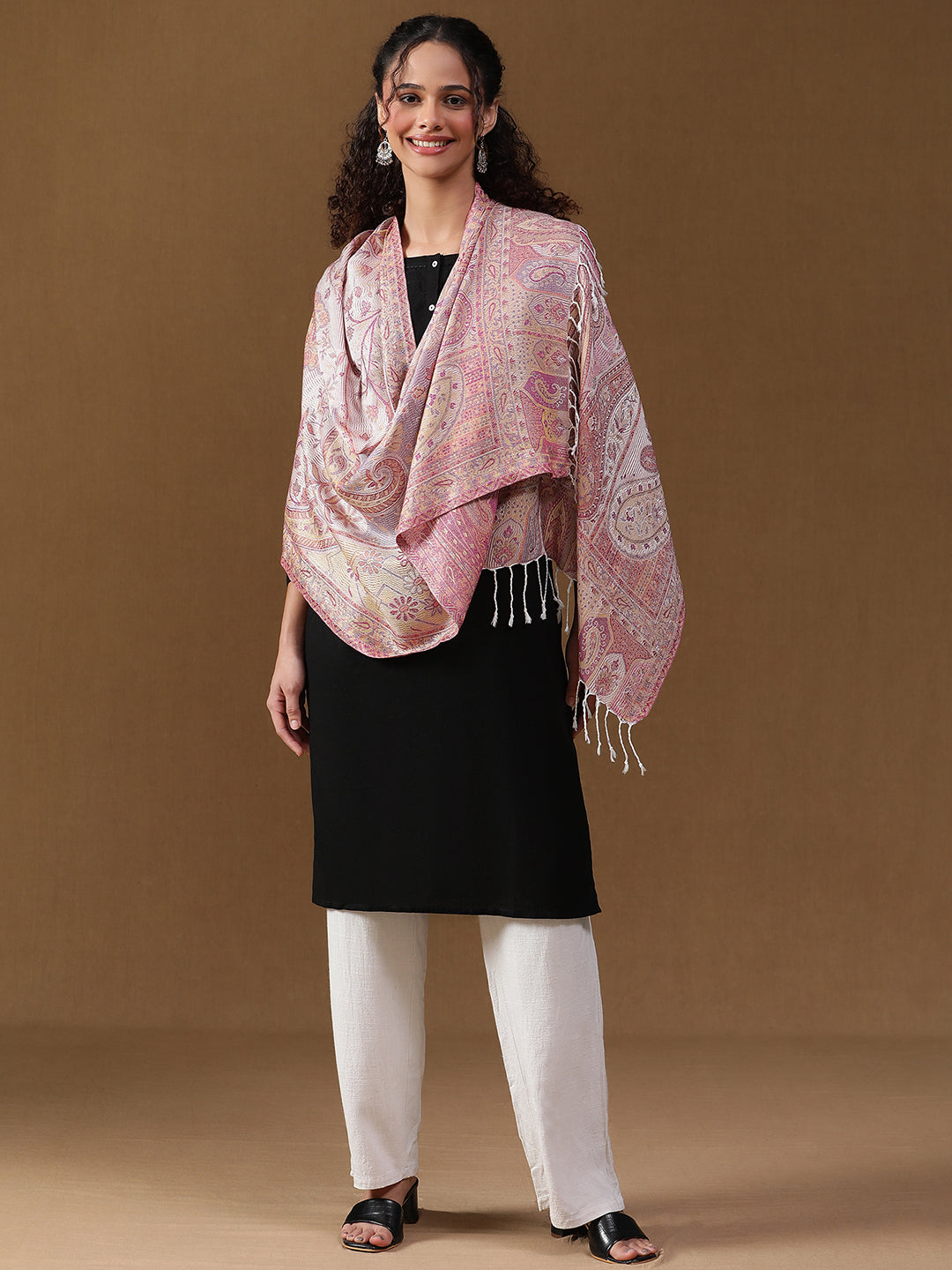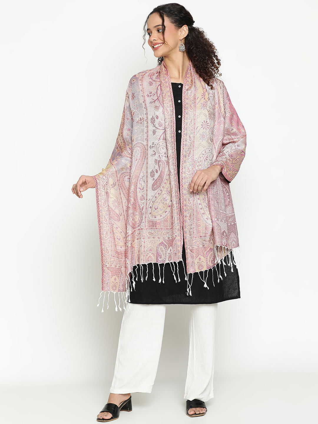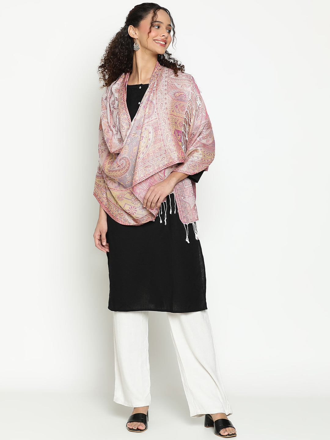 Designed for the modern working woman, this scarf transitions seamlessly from boardroom meetings to evening dinners. The intricate jacquard weave highlights subtle Kashmiri artistry, adding depth and cultural character without overpowering your look. Light yet warm, it’s perfect for air-conditioned offices, travel days, or simply elevating everyday outfits with a touch of heritage and sophistication.