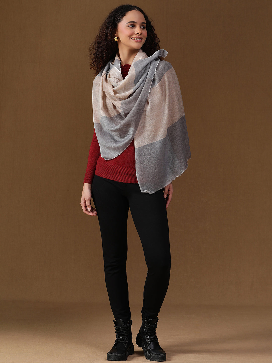 Elevate your winter wardrobe with this luxurious neutral check scarf, expertly woven from a soft wool and cashmere blend. Designed for both comfort and style, its oversized check pattern adds a timeless, sophisticated touch to any outfit. Perfectly cozy for chilly days and elegantly versatile for gifting, this stole drapes beautifully over shoulders or wraps snugly around the neck. Ideal for the festive season, office wear, or thoughtful gifts, it’s a statement piece that blends classic design with modern elegance.