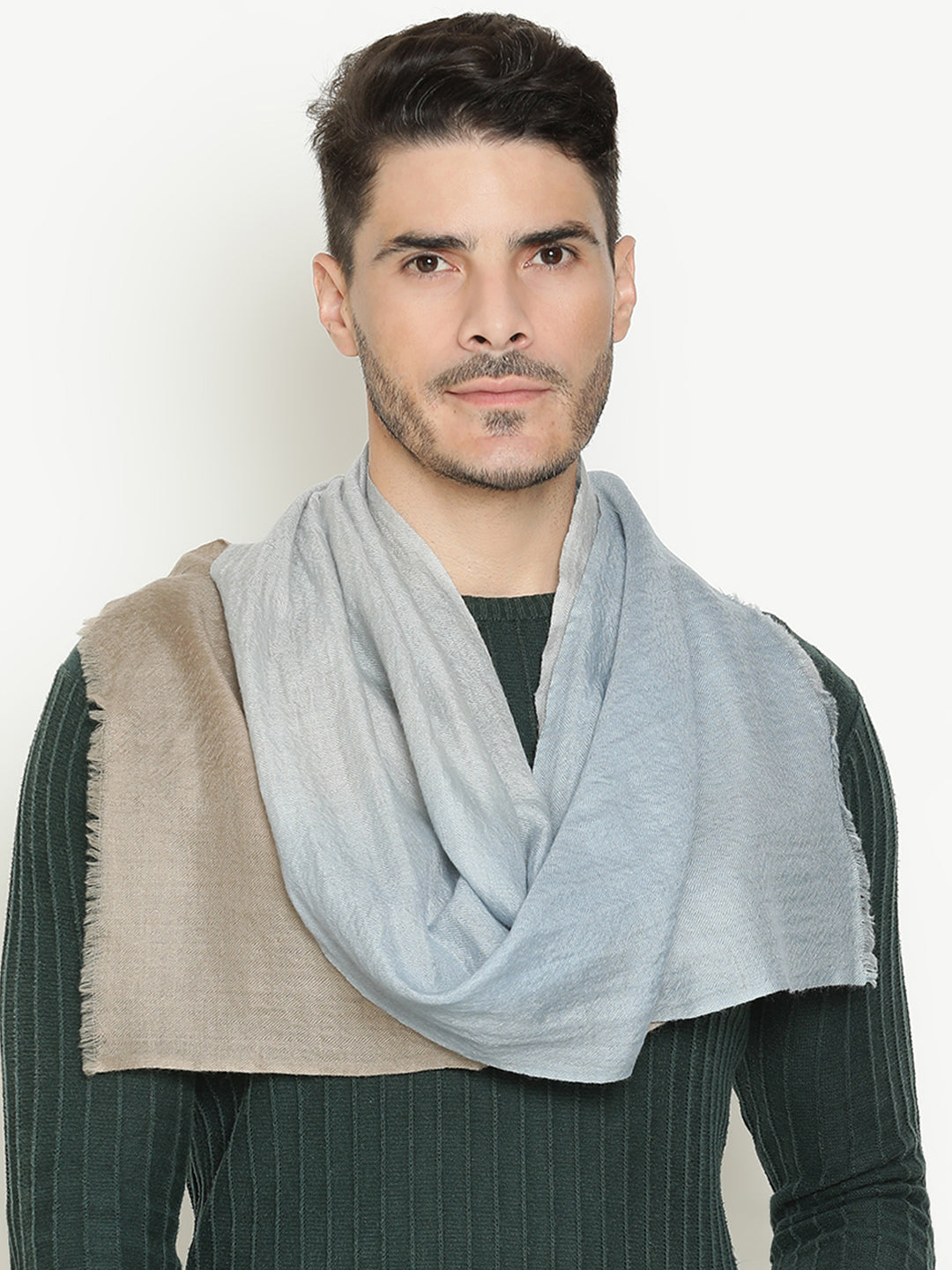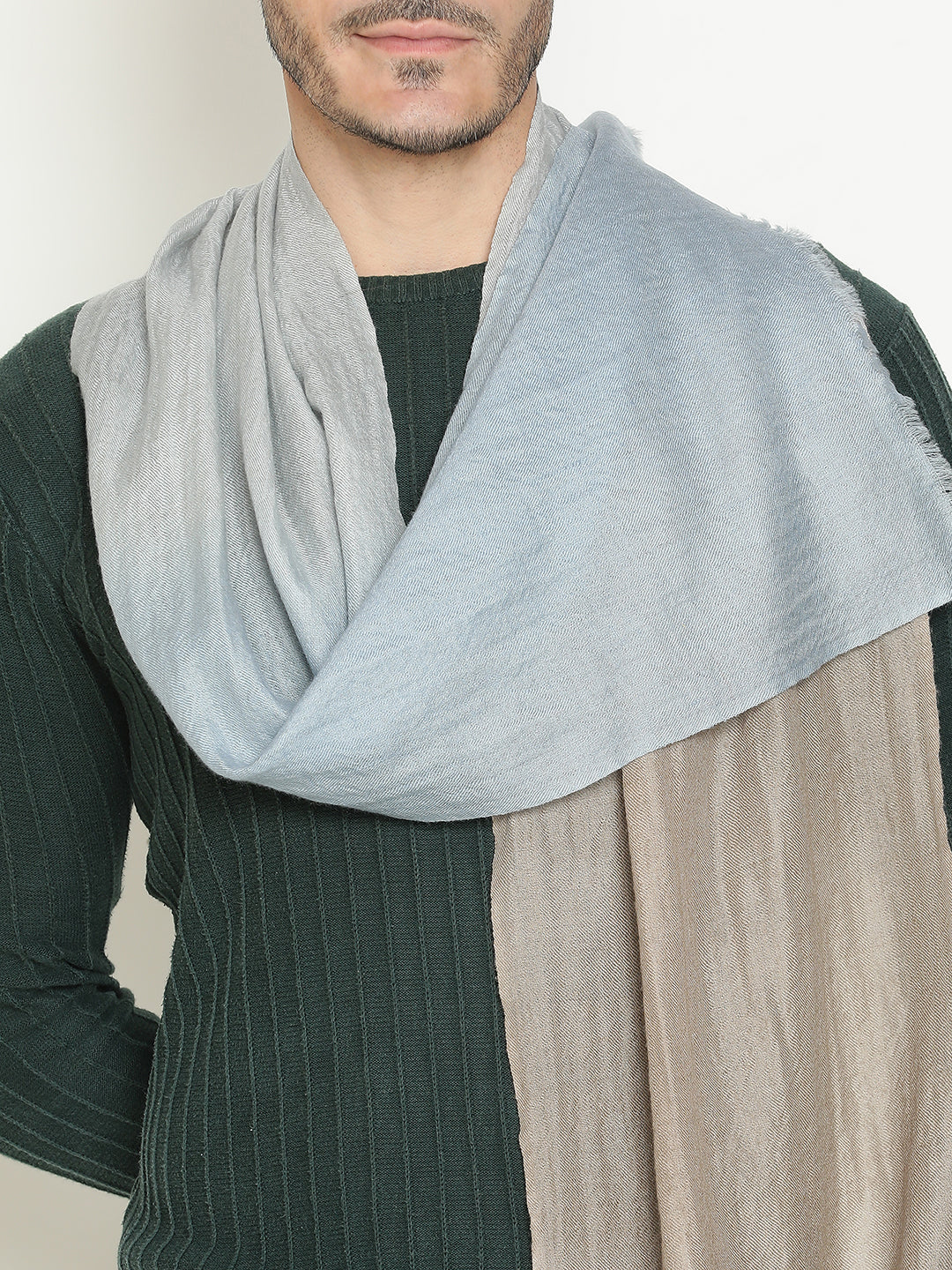 Ombre-Dyed Pure Cashmere Muffler – Light Blue and Toosh