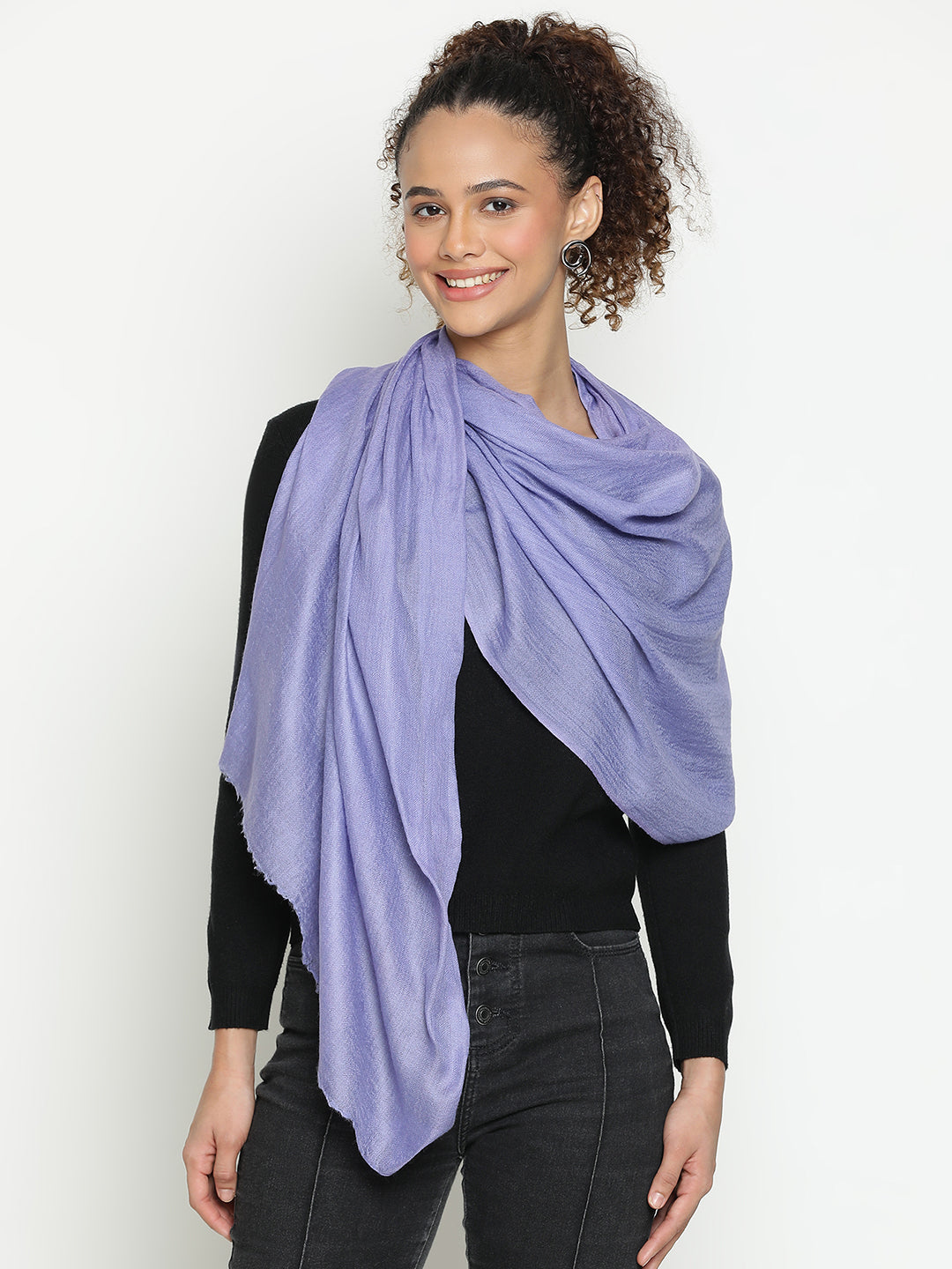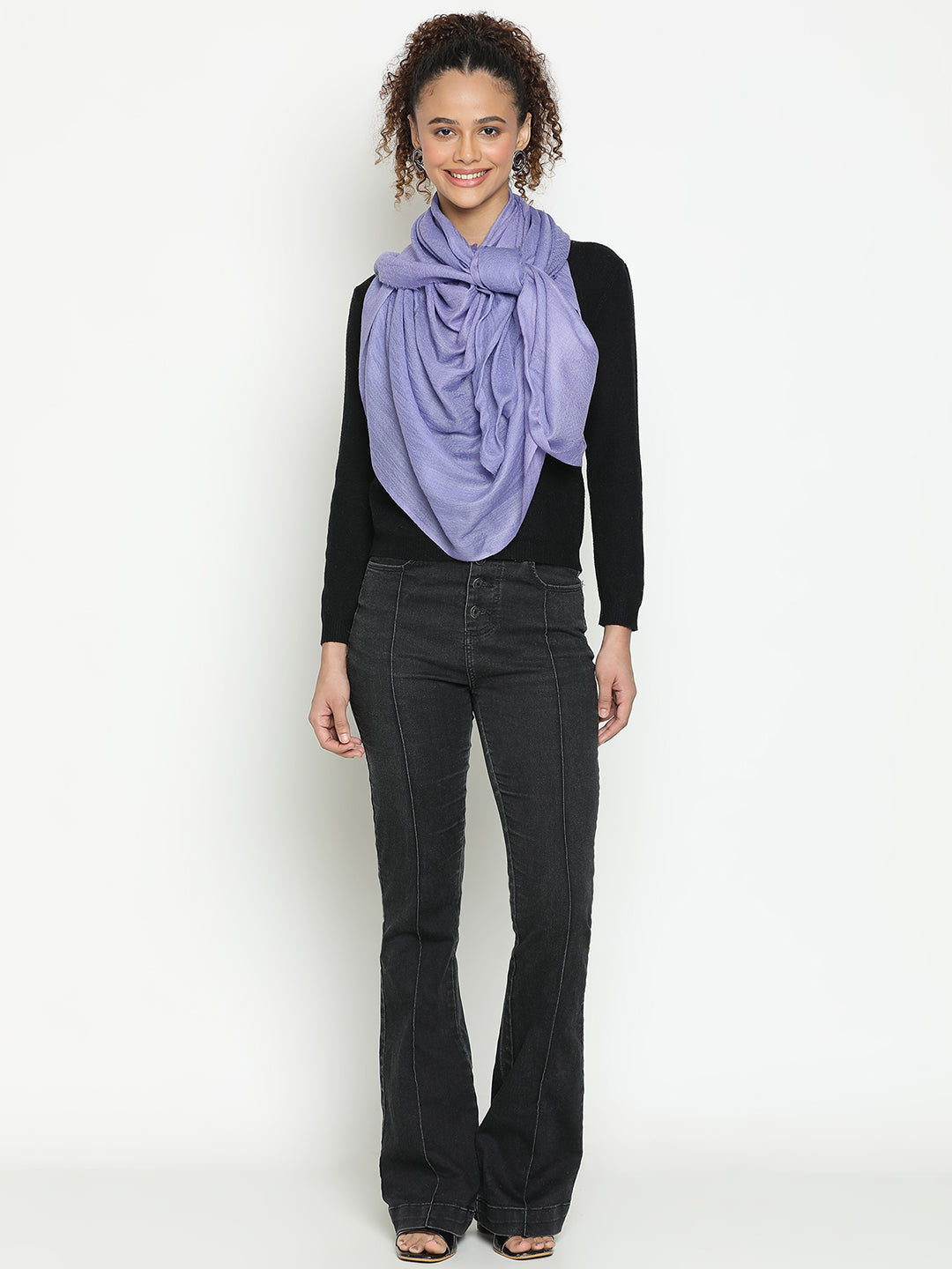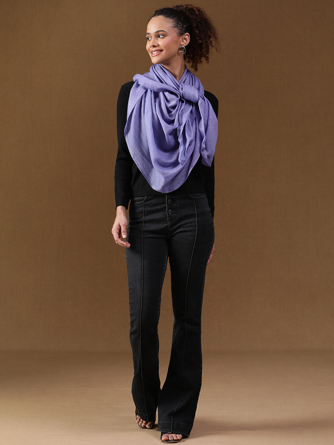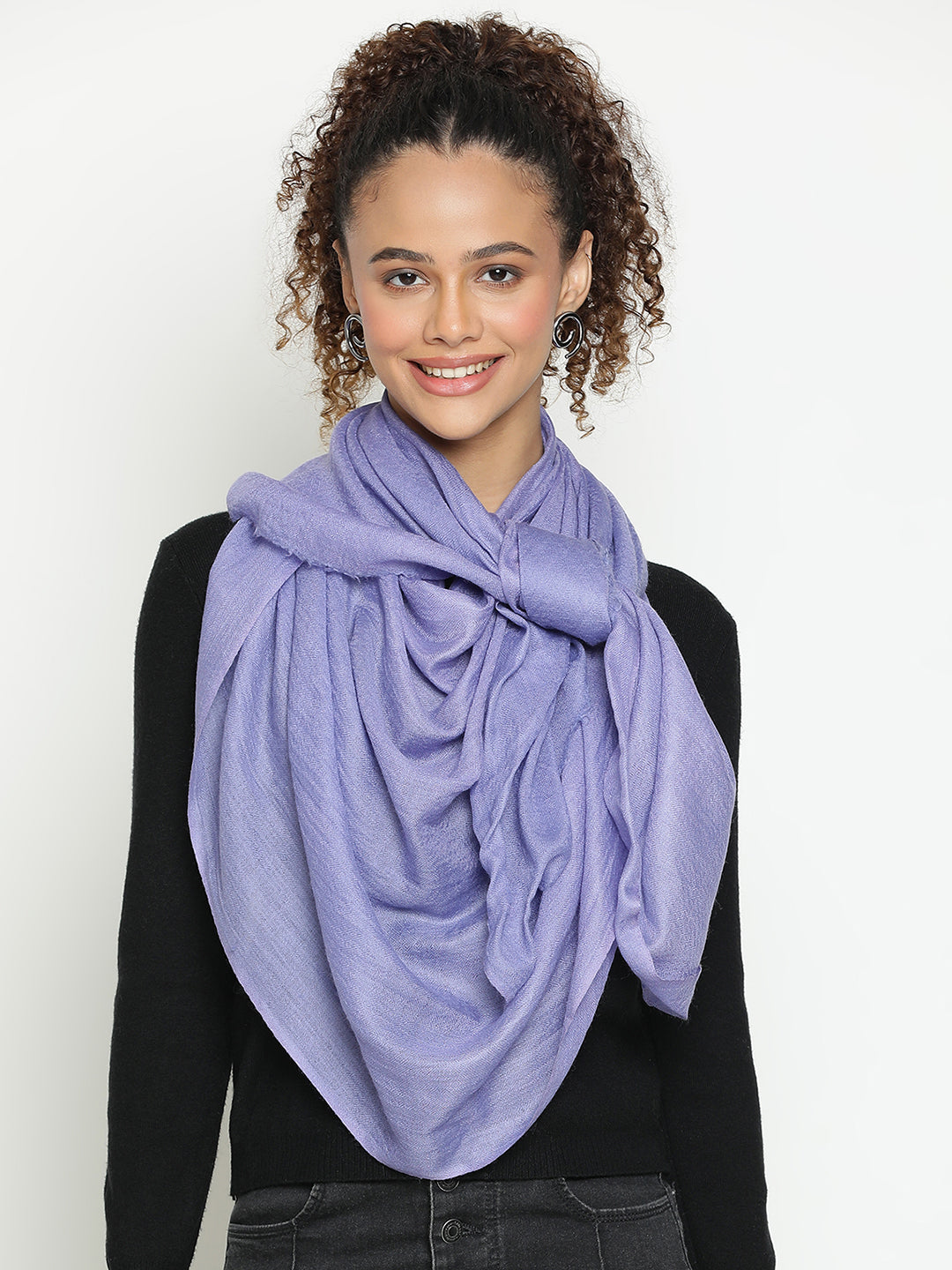 The airy, breathable fabric makes it ideal for year-round wear, offering just the right warmth without feeling heavy. Its pastel lavender hue adds a soothing touch of color, perfect for layering with workwear, travel outfits, or casual ensembles. Whether draped over the shoulders or looped around the neck, it enhances any look with understated sophistication.