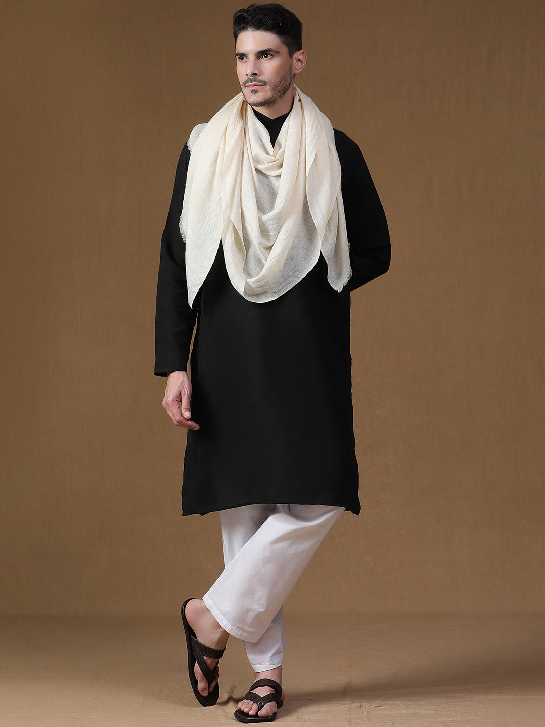 Feather-light yet luxuriously warm, this stole drapes beautifully, making it perfect for both formal occasions and relaxed, everyday elegance. Its understated design and natural sheen celebrate the purity of fine cashmere while adding a touch of quiet opulence to your wardrobe. A true heirloom piece, crafted with precision and care, this stole embodies the beauty of traditional hand-weaving brought into a contemporary world — ideal for gifting or as a treasured personal indulgence.