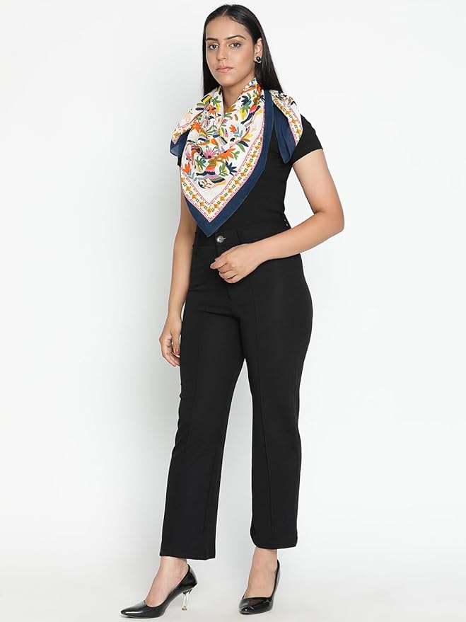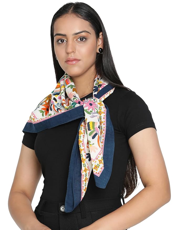 The square scarf is the perfect accessory for the scorching heat. It adds a punch of flair to your outfit, effortlessly blending comfort with urban elegance.