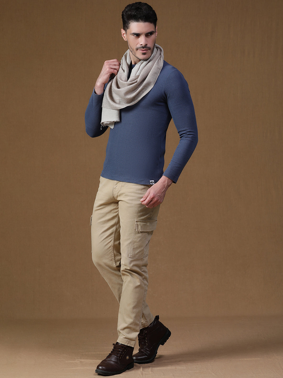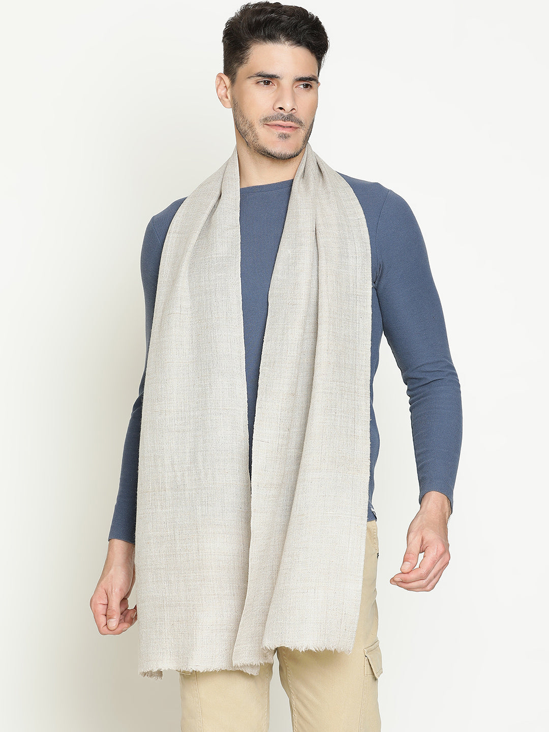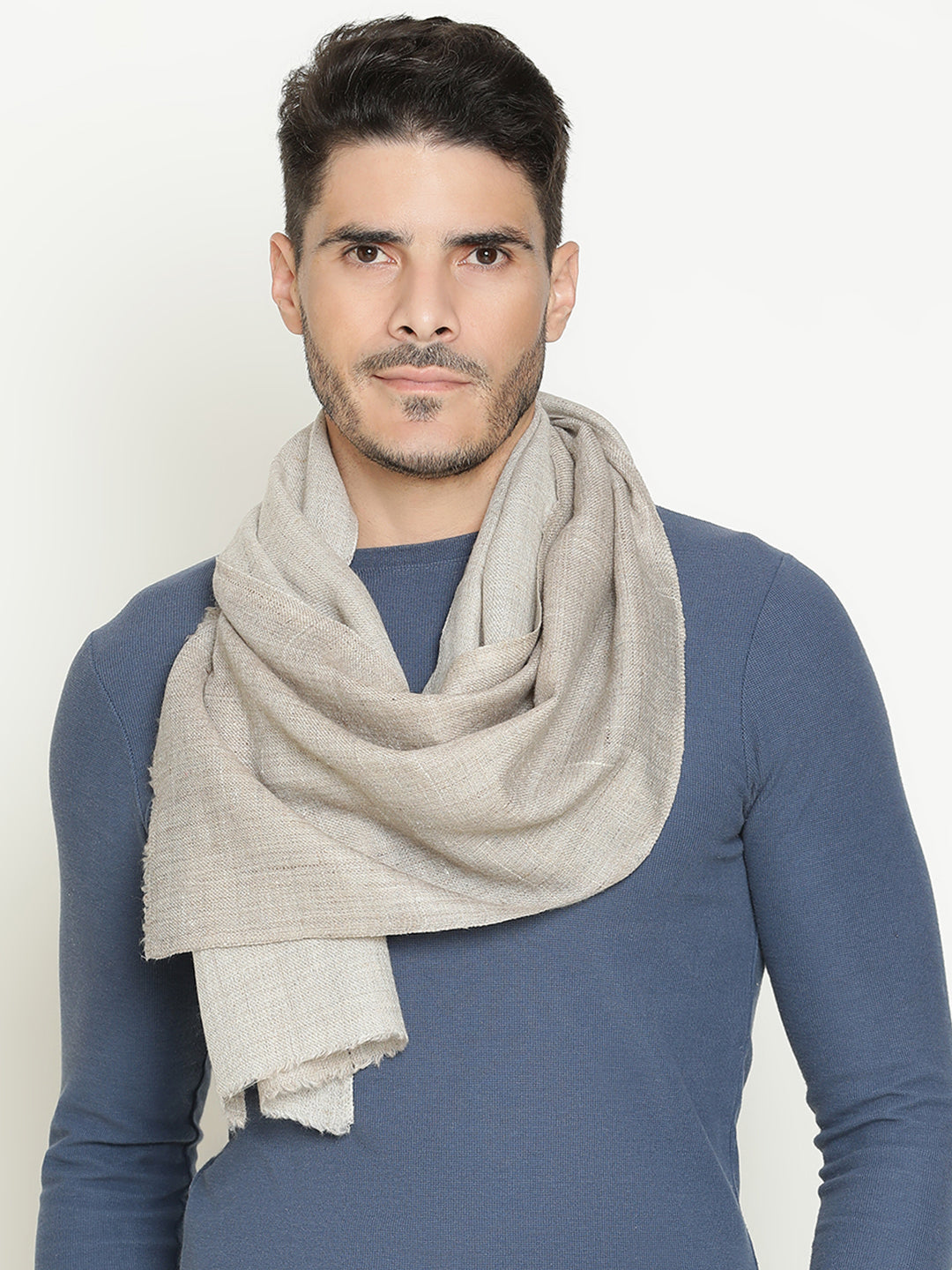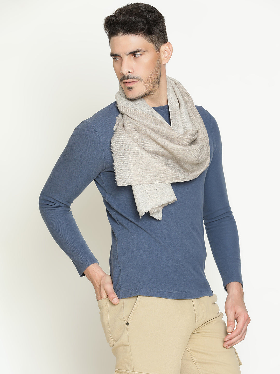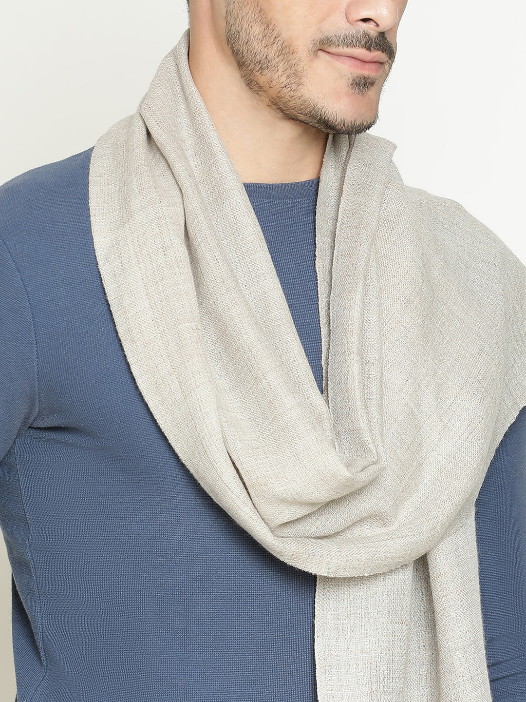 Reversible Wool Blend Muffler for Men in Beige Ivory