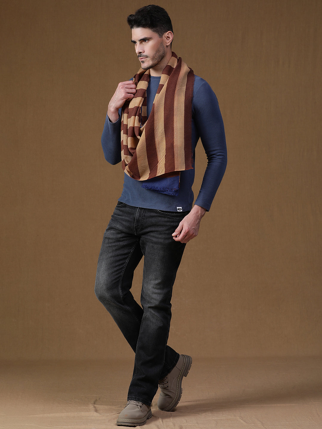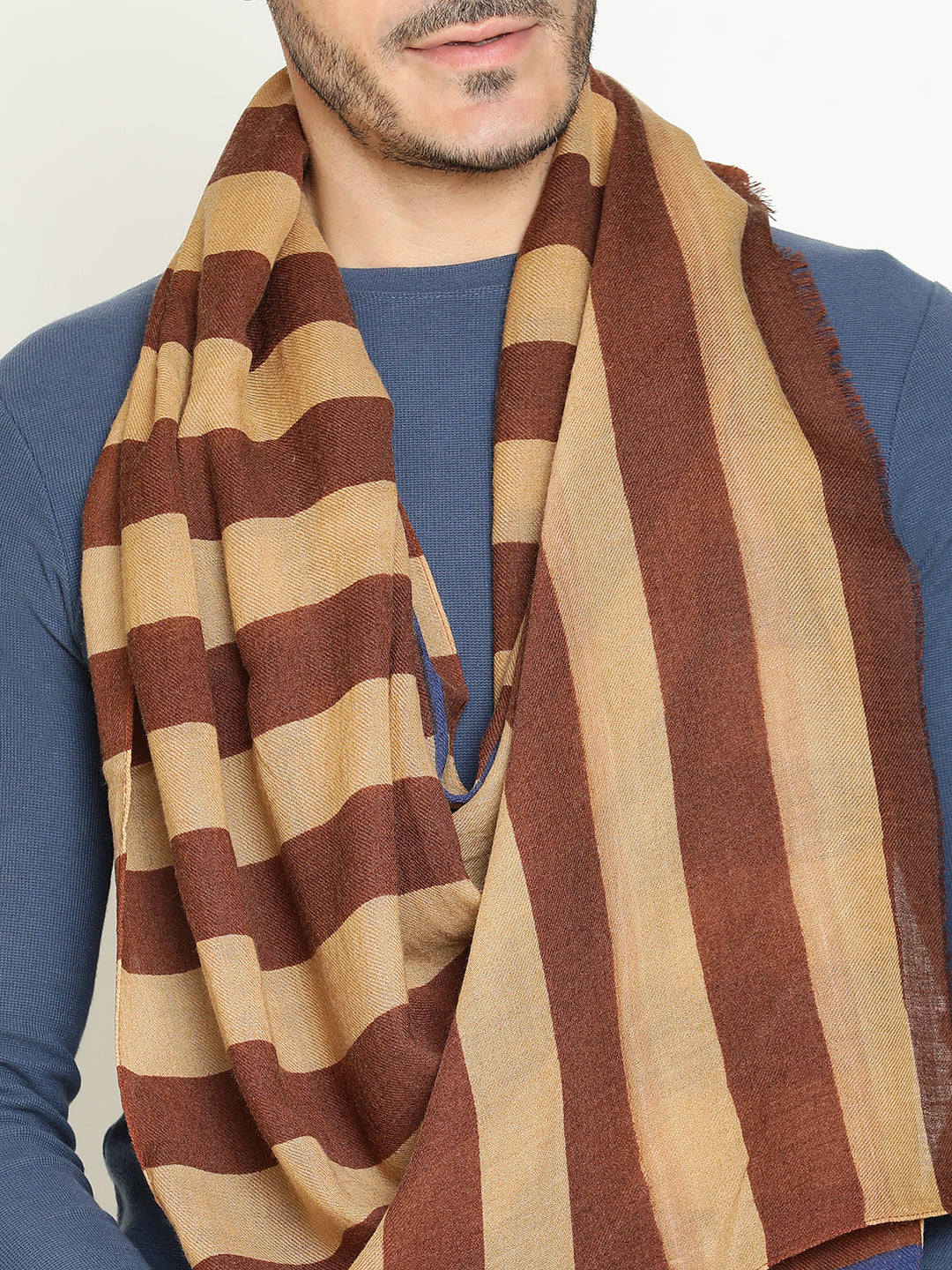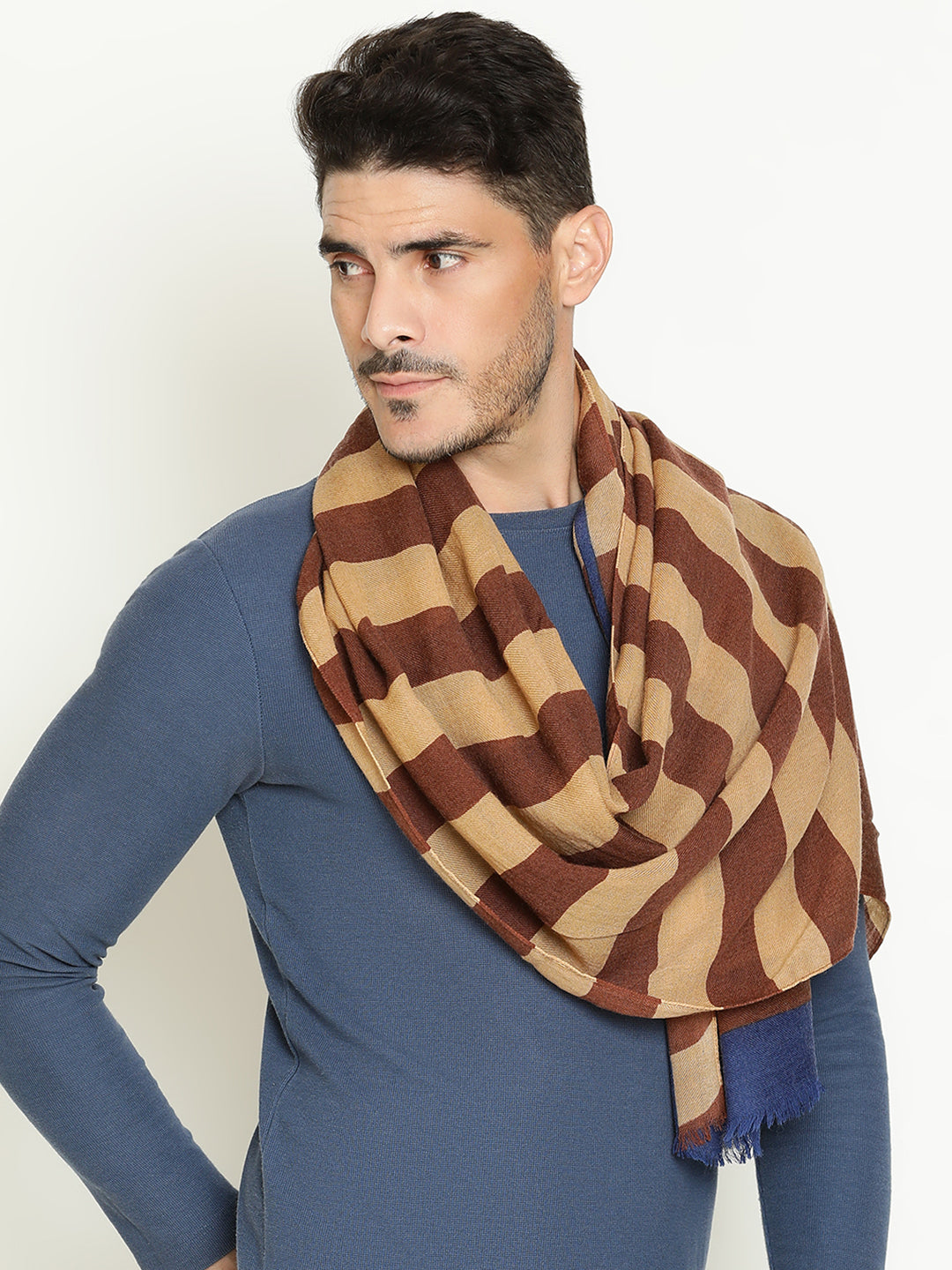 Easygoing yet refined — this men’s printed scarf brings a fresh edge to everyday layering. Designed with horizontal stripes in warm caramel and sand brown tones, it blends comfort with effortless style. The soft, lightweight fabric drapes naturally, making it ideal for both city commutes and weekend downtime. Whether thrown over a tee or paired with a structured jacket, it adds the right amount of texture and color to elevate your look. Simple, versatile, and statement-making in its own quiet way.