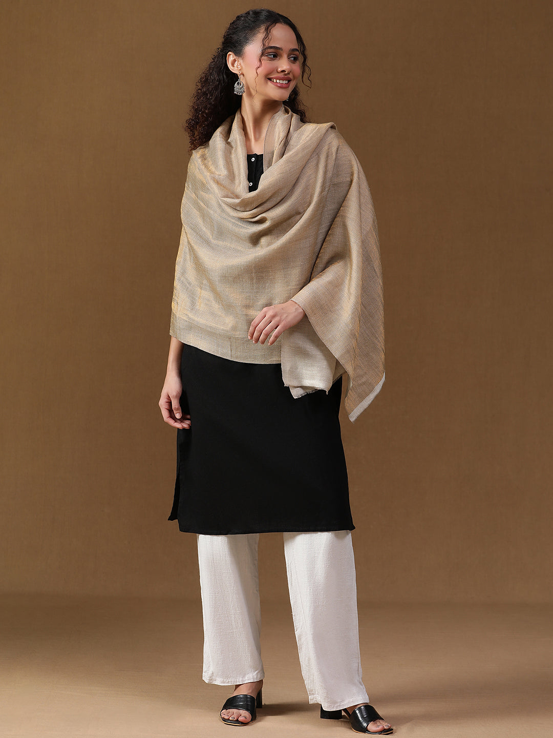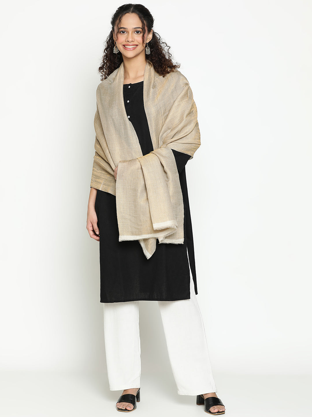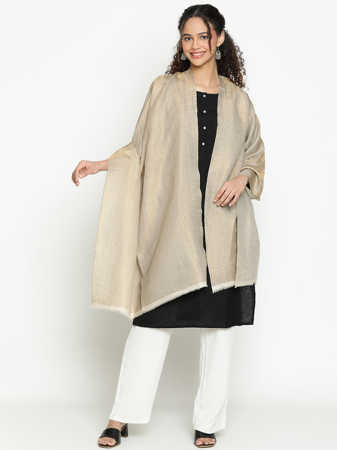 Where tradition meets modern ease — this pure Cashmere reversible stole is woven with a subtle zari shimmer, bringing a hint of festivity to everyday sophistication. Crafted in staple, versatile colors, it pairs effortlessly with both Indian and Western ensembles, making it your go-to accessory for the festive season and beyond.